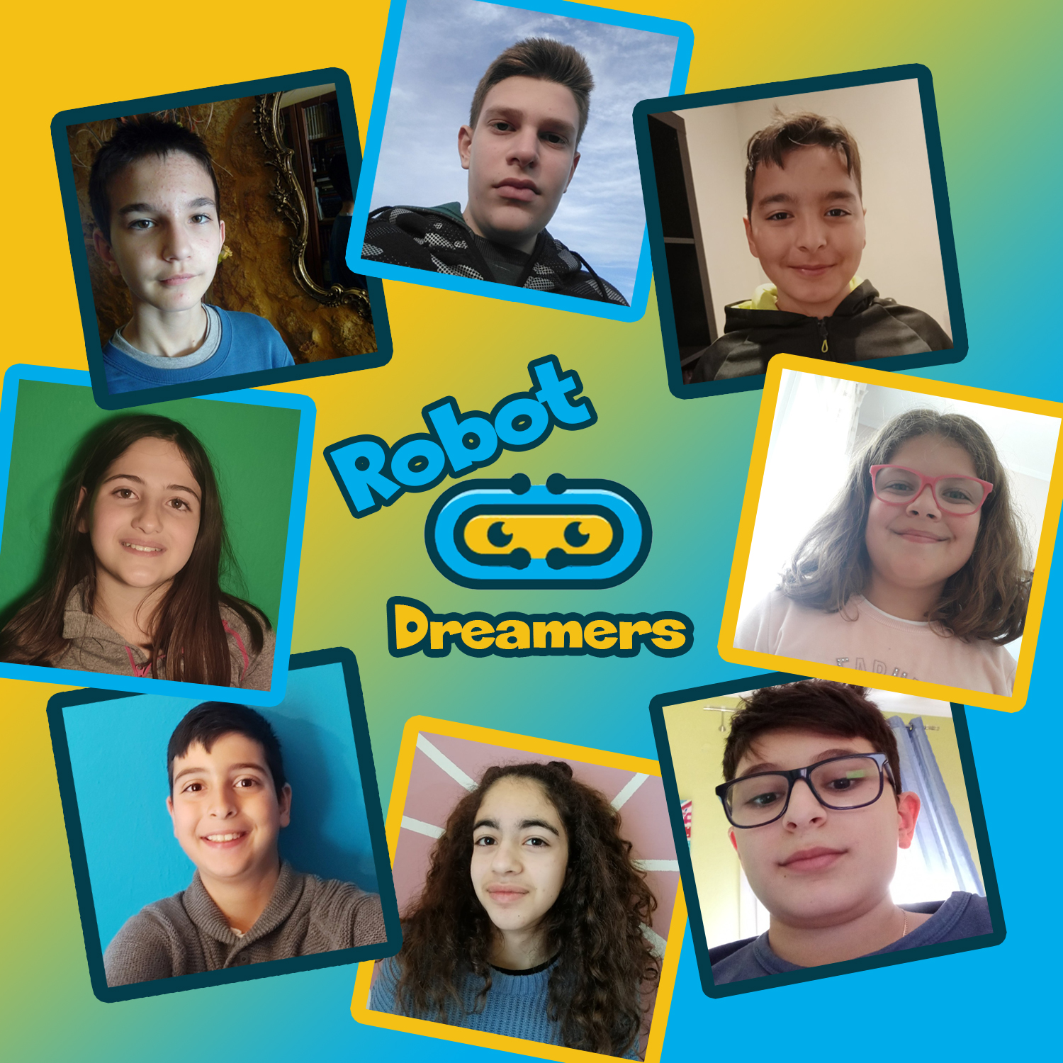 Η ομάδα μας ονομάζετε RobotDreamers. Η ομάδα αποτελείτε από 8 μέλη την Άνθη, τον Αβραάμ, τον Άλκη, τον Λευτέρης, τον Πασχάλη, τον Παναγιώτη, την Αναστασία και την Ελευθερία. Το όνομα της ομάδας το ανακαλύψαμε φέτος, ως ομάδα εκπαιδευόμαστε πολλά χρόνια στην εκπαιδευτική ρομποτική, φέτος παίρνουμε μέρος για πρώτη φορά στο αγωνιστικό μέρος της ρομποτικής και συγκεκριμένα στο διαγωνισμό του FLL. Έχουμε πάρει μέρος και στο FLL Junior, το FLL Challenge όμως είναι η πραγματική πρόκληση πλέον για μας. Στην φάση της καραντίνας κάναμε ρομποτική από το σπίτι με κιτ του MICRObit σε συνδυασμό με το Scratch. Τώρα που μπορούμε να βρισκόμαστε όλοι μαζί στο εργαστήριο μας κάνουμε ρομποτική με το Spike με το οποίο έχουμε κατασκευάσει και το ρομπότ του διαγωνισμού.